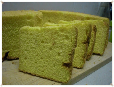 - 将混合料倒入已预热的9寸雪芳蛋糕模里,以180度烤35-40分钟,将雪芳蛋糕移离烤炉,倒扣待冷。