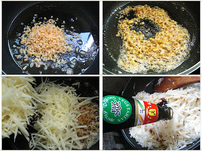 1. 烧热油,爆香虾米、蒜茸及葱头仔碎,加入沙葛丝和红萝卜炒软,加入调味料继续炒至均匀及香,加入粟粉水打芡,试味,盛起待冷,放入冰箱冷藏3小时。